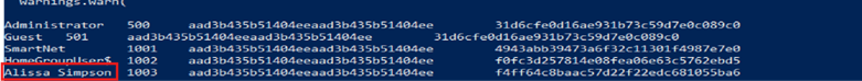 - Saldırının Başlangıç Noktası: Saldırının, sistemdeki Alissa Simpson (PID 1003) adlı yerel kullanıcının hash'i ile ilişkilendirilmiş olması, ilk enfeksiyonun ya bir kimlik avı (phishing) saldırısı ya da zayıf parola kullanımı sonucu hesap ele geçirme yoluyla gerçekleştiğini göstermektedir.
