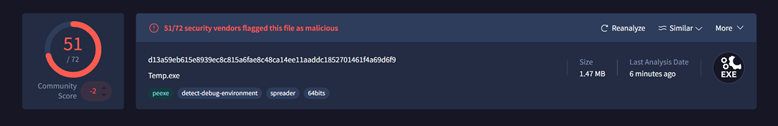 - KERNEL32.dll: GetTempPathW, CreateFileW, VirtualAlloc, Sleep
