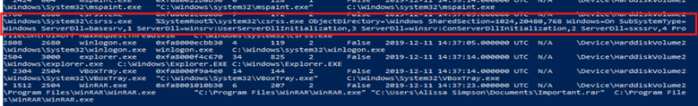 Bakın aslında işin en mükemel tarafı bu Alissa Simpson adlı kulanıcıyı kulanmışlar ve bu saldırı tam olarakda buradan başlamış aslında burden sonra çok bir işlem kalmadı niyemi şuana kadar buldumuz zararlı işlemleri kulanarak bir strateji geliştire biliriz ama ben dahada derine inmek isdiyorum niyemi diye bilirsiniz çünki şuana kadar buldum bilgiler gerçekden muazam ama ben IP’ler sunucu IP’leri görmüyorum bakın işde aslında bunları görmemiz içinde Dump işlemleri yapmamız gerek bu komutuda kulanmak aslında fazlasıyla kolay
